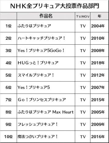 ちなみにランク外はスプラッシュスター、スイート、ドキドキ、ハピチャ、アラモード、スタプリ